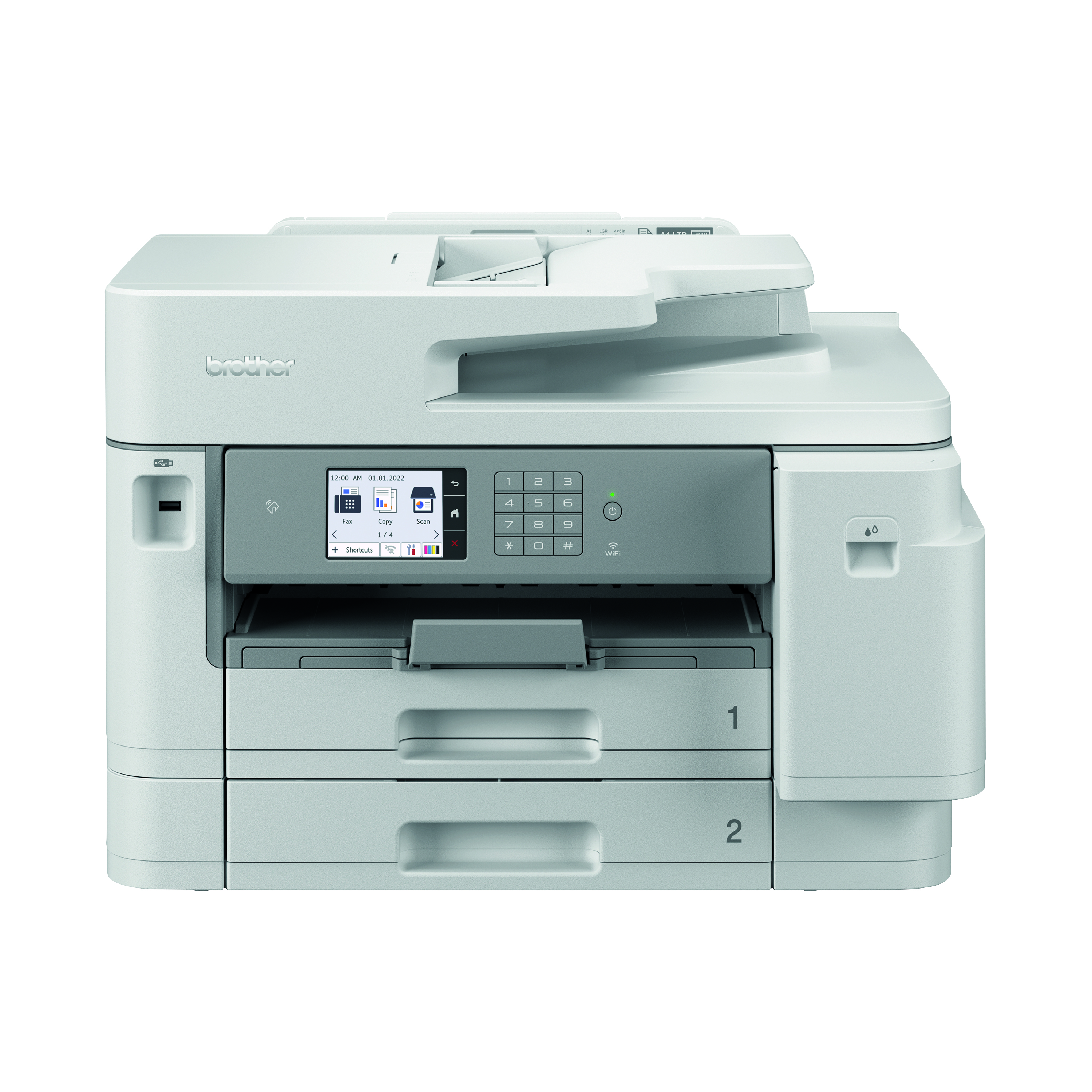 With a host of business features and functions, the MFC-J5955DW offers quick and secure printing directly from your mobile using NFC. Set up fast scan options with the intuitive user interface allowing you to scan directly to your favourite office applications. The 8.8cm colour touchscreen features an intelligent page gauge function allowing you to keep track of your ink level usage.