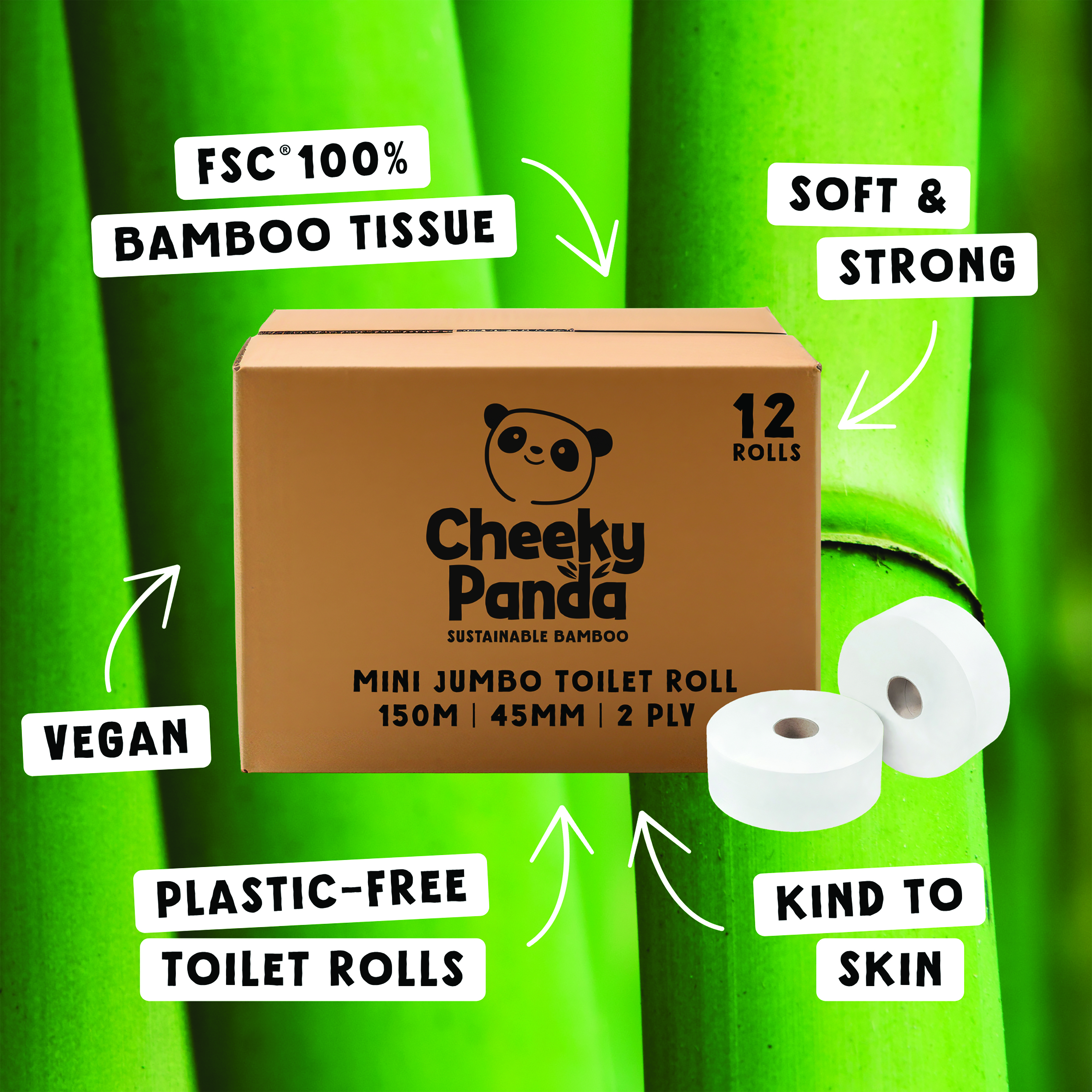 Cheeky Panda 2-Ply Mini Jumbo Toilet Roll 150m (Pack of 12) PFMINJRL12