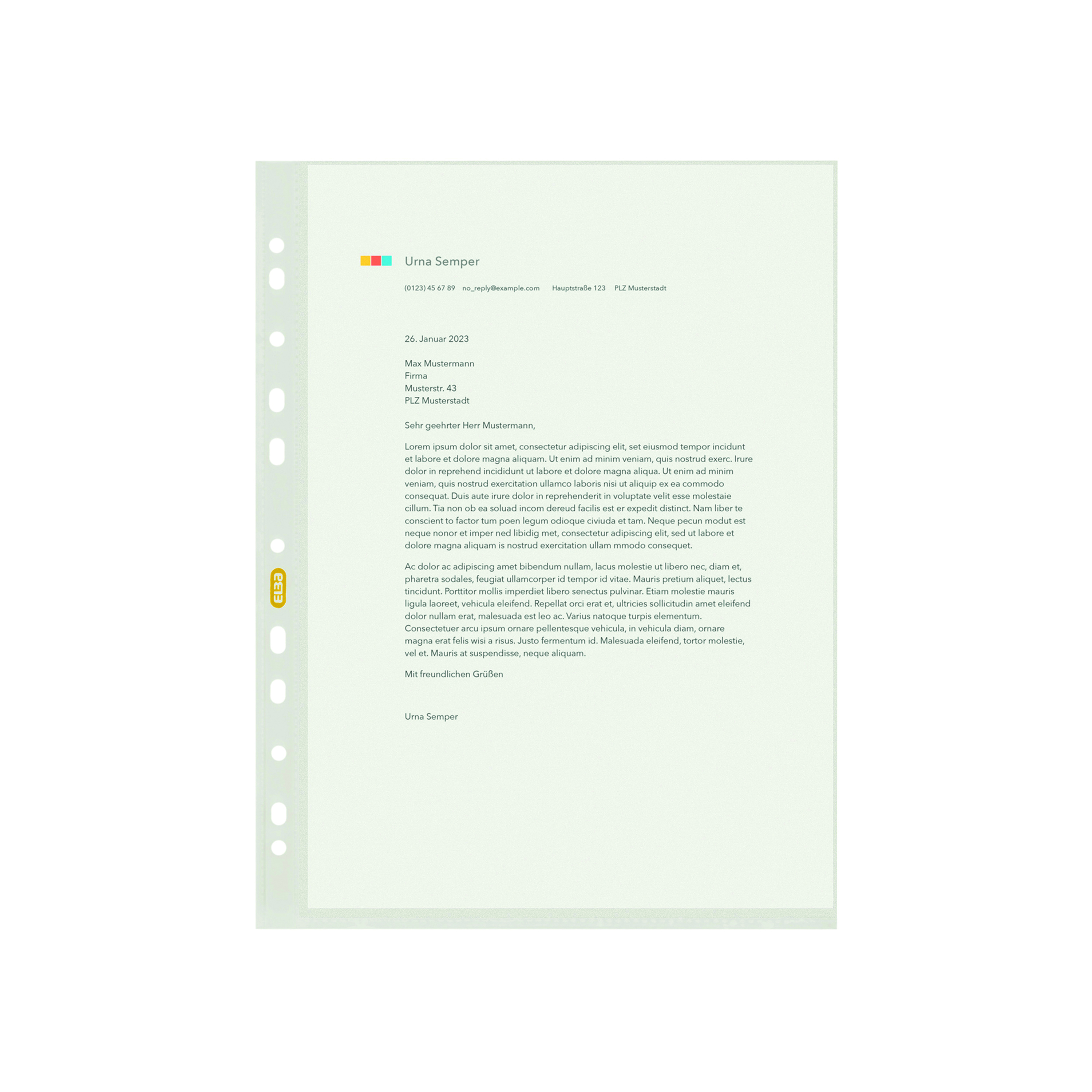 Crafted from premium recycled PE material certified with the Blue Angel and made from at least 80% post-consumer recycled material, the Elba embossed punched pockets make a statement for sustainability. With a thickness of 80m, they offer protection for documents and accommodate up to 20 A4 sheets, keeping documents organised and secure. The Elba punched pockets are an environmentally friendly choice without compromising on quality.