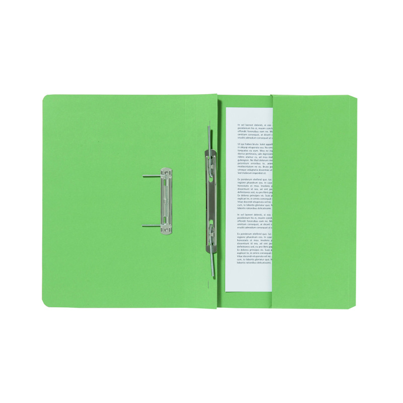 These strong 285gsm folders create a stylish filing solution for reports, presentations and more and are ideal for use in the office, home or classroom. The metal spiral fitting secures punched papers in place and allows them to be worked on whilst in the file. The useful pocket also allows you to store unpunched papers. These colourful files can be used as part of a colour coordinated filing system and have a 350 sheet capacity. This pack contains 25 foolscap files in green.