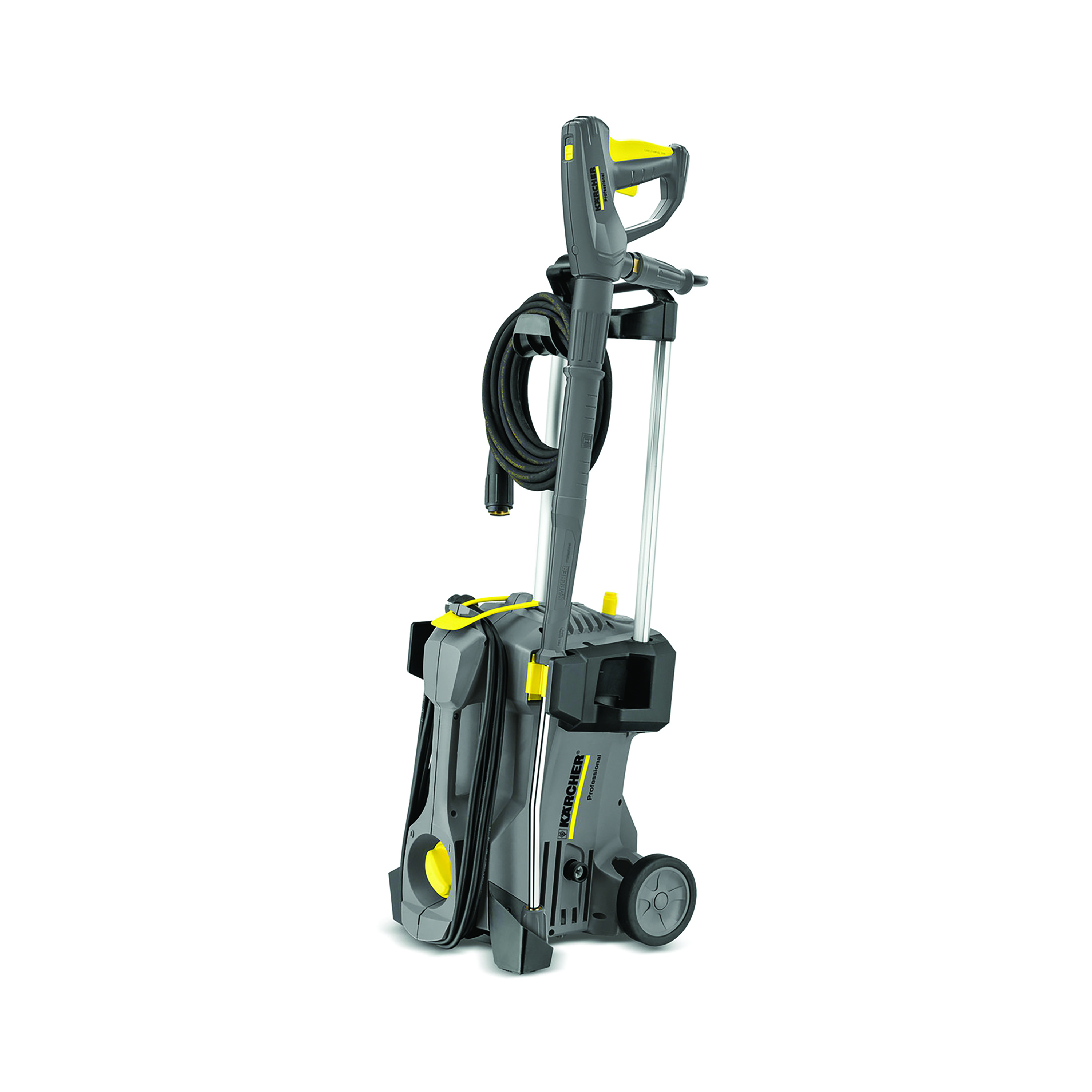 Karcher's HD 5/11 P offers professional quality and performance in a truly portable package. Thanks to its compact dimensions, light weight, and built-in carry handle, the HD 5/11 P is incredibly easy to transport even up steps or ladders. The machine has several features usually found on much more expensive machines, like the automatic pressure relief feature to protect internal components on start-up, the EASY!Force trigger gun with rotating lance, and high-grade hose and power cable. All of its professional-grade accessories are stored on-board, providing easy access and helping to prevent trip hazards. This tough, simple machine can be operated in a vertical or horizontal position, making it safer for use at height or on uneven ground.